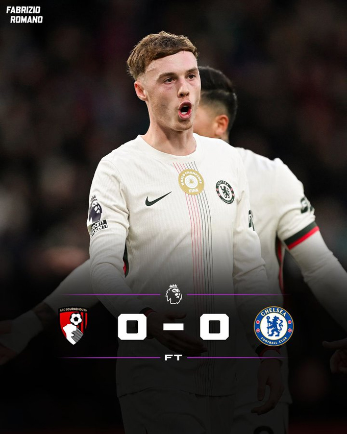 Trong khi Man City đại thắng để tiếp tục cuộc đua vô địch thì Chelsea lại đang cho thấy dấu hiệu hụt hơi. Sau khi hoà Arsenal 1-1 và thua Leeds 1-3, The Blues tiếp tục có trận thứ 3 không thắng khi bị Bournemouth cầm hoà 0-0.