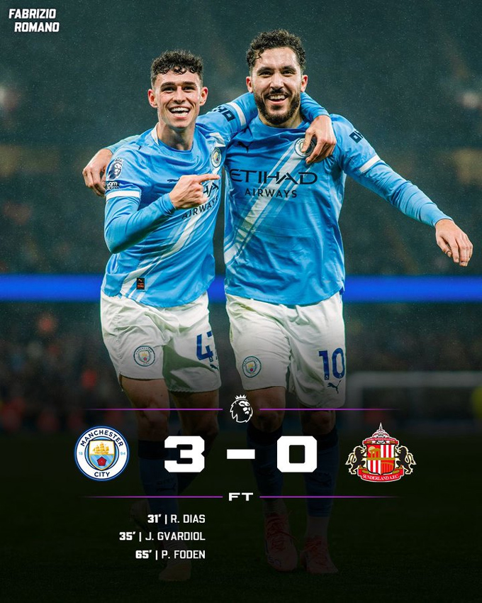 Bước sang hiệp 2, Man City ghi thêm 1 bàn thắng nữa nhờ công của Phil Foden sau cú rabona kiến tạo của Ryan Cherki. Về cuối trận, Sunderland còn phải thi đấu thiếu người khi O'Nien phải nhận thẻ đỏ.
