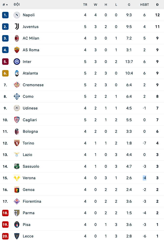Lautaro Martinez và Francesco Pio Esposito lần lượt lập công ở hai hiệp đấu, mang về trọn vẹn ba điểm cho đoàn quân của HLV Cristian Chivu, tạm thời đưa họ vươn lên vị trí thứ 5 trên bảng xếp hạng với chiến thắng thứ ba kể từ đầu mùa.