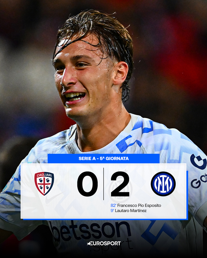 Trong khi đó, Inter đã có chiến thắng sân khách đầu tiên ở Serie A mùa này khi vượt qua Cagliari 2-0 tại sân Unipol Domus.