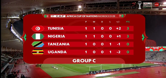 Ở trận đấu còn lại của bảng đấu, Tunisia đã đánh bại Uganda với tỷ số 3-1 để tạm có được ngôi đầu bảng C. Nigeria đứng thứ 2 do kém hơn về hiệu số.