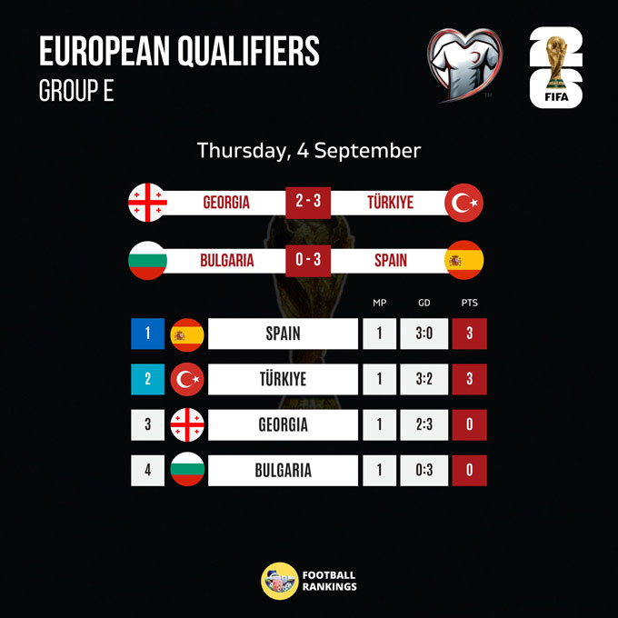 Vòng loại World Cup 2026 khu vực châu Âu: Tây Ban Nha thắng đậm, Đức thua sốc