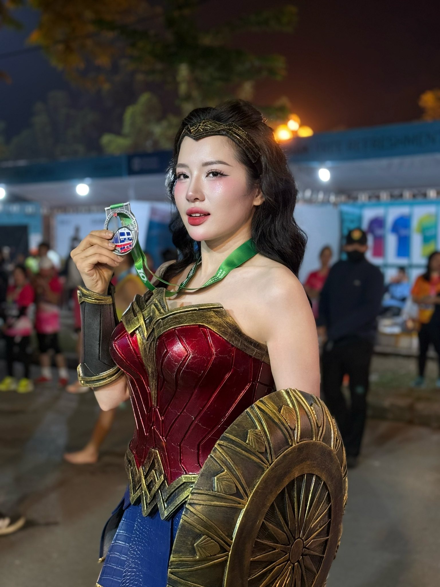 Tại giải đấu này, cô hóa thân thành một nữ thần chiến binh. Hình ảnh Loan Barbie cầm theo tấm khiên khá nặng, đầy khỏe khoắn và nóng bỏng hoàn thành cự ly 10km nhận được nhiều lời khen.